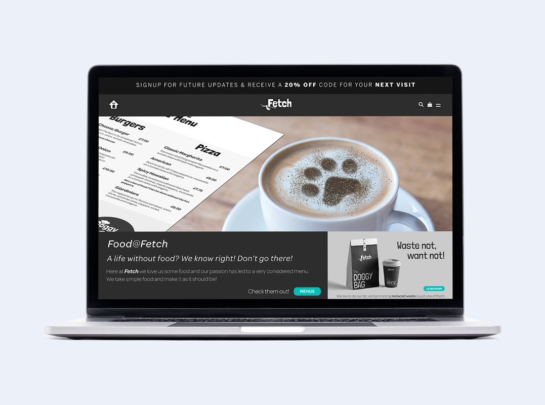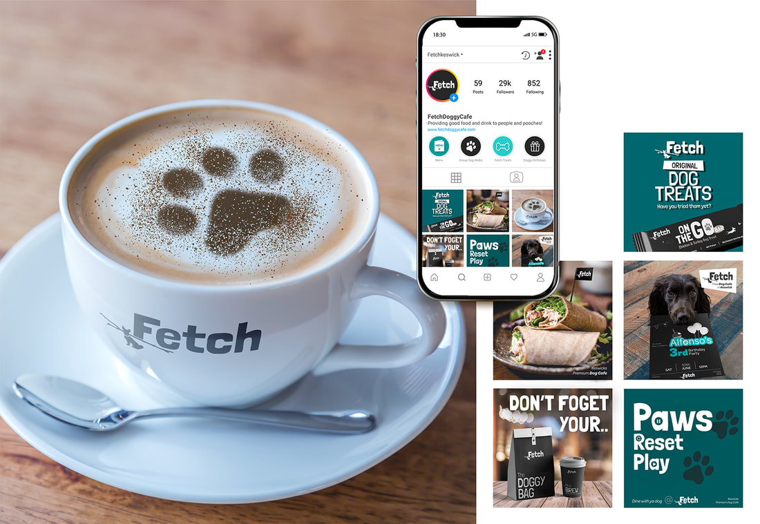 Brief: Create a brand identity for a dog friendly, dog themed cafe. This includes social media, online presence, a poster, shop front and menus. |